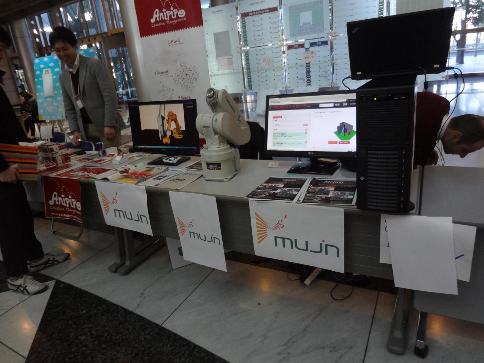 デンソーウェブ様から助言を受け、その年末の2011国際ロボット展にて、1テーブルで、でデモ展示を行いました。MUJINとして正式に、初のお披露目となりました。